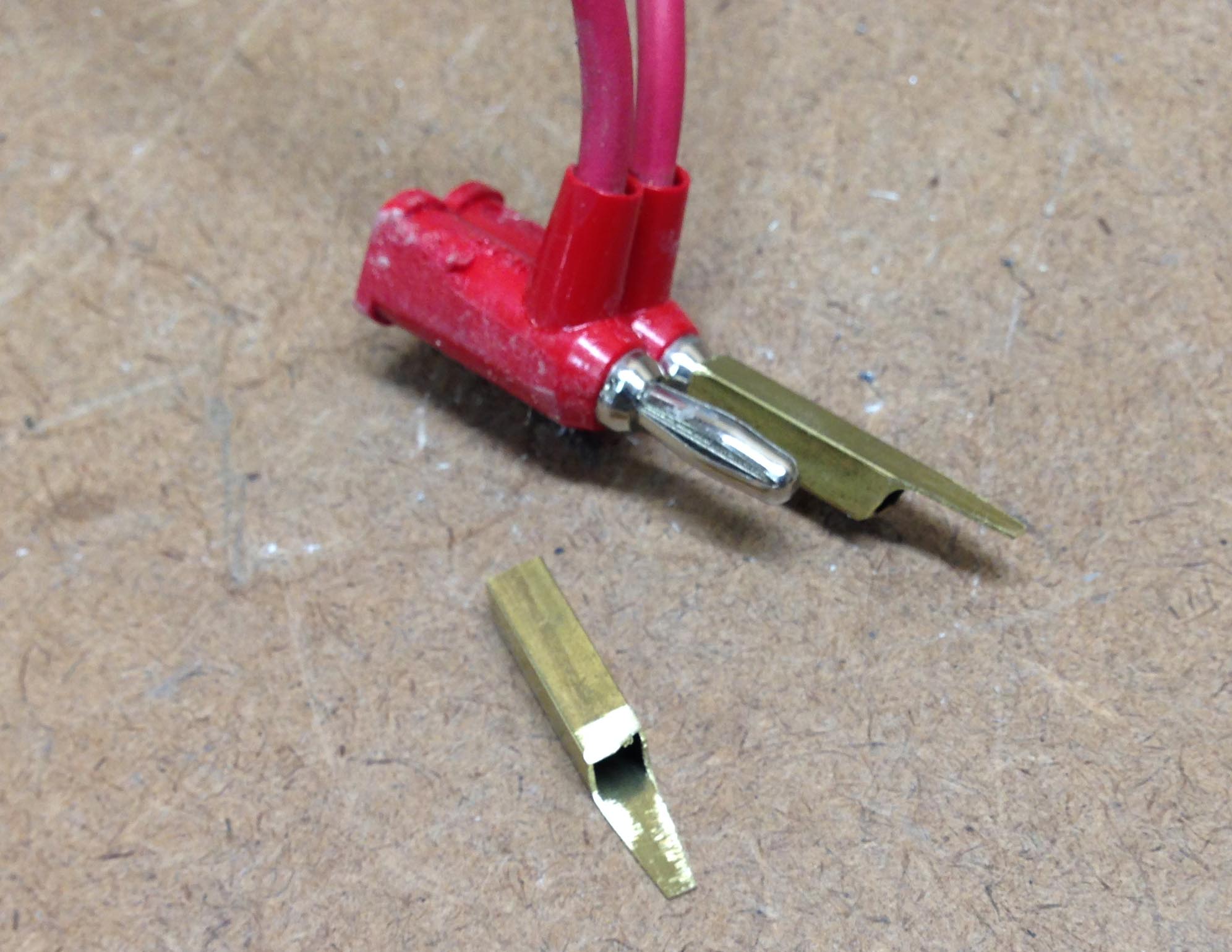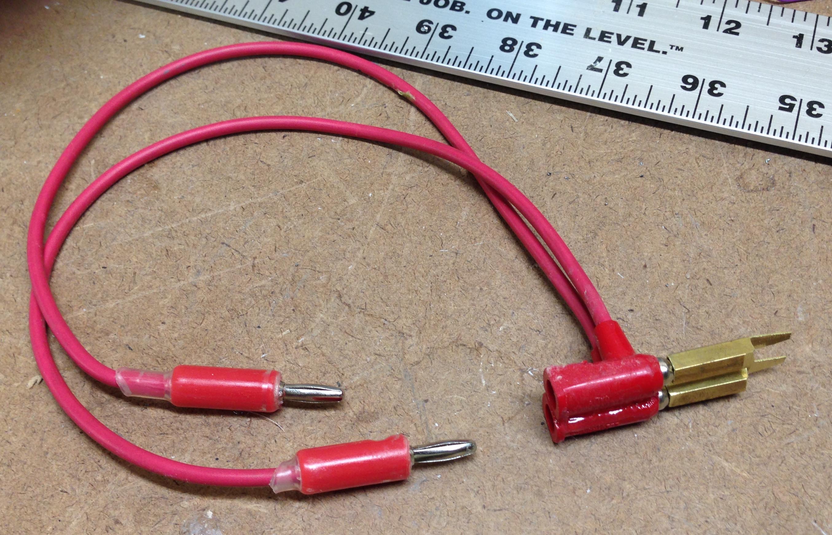 | The tool is finished by adding lead wires with bananna plugs to