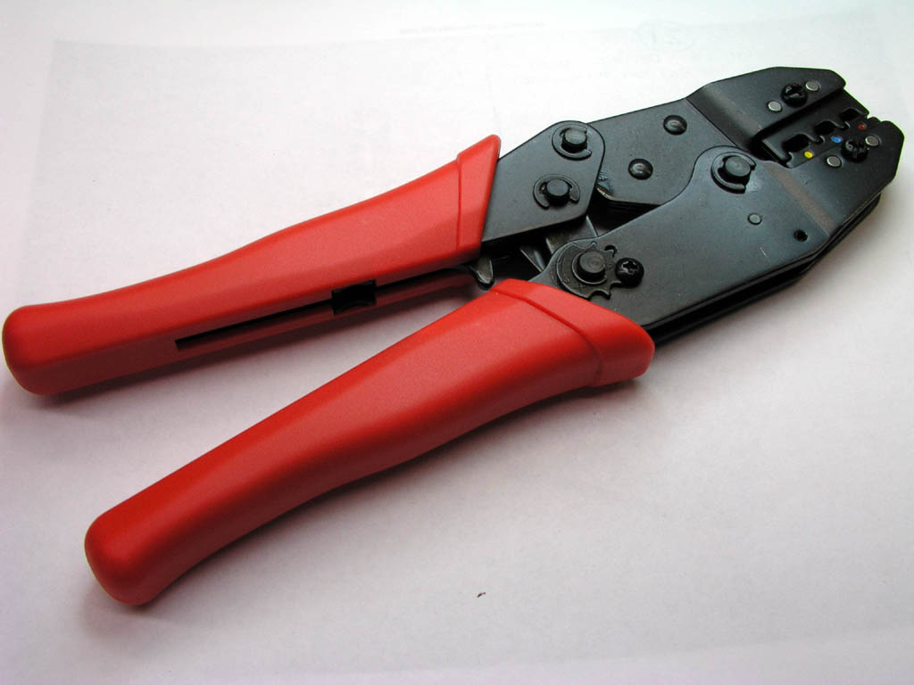 for the installation of top-of-the-line terminals on wires. The tool pictured on the left is an Asian knockoff of a family of relatively low cost tools made in the US for terminal installation. It has ratchet controlled handles that force the tool to be cycled through a full stroke against hard stops so that uniformity of crimp height is guaranteed. This tool sells from B&C's website catalog for about $40. The tool pictured on the right is the Amp "t-head" tool for red (16-22AWG) and blue (14-16AWG) terminals. I purchased this tool at Cessna salvage about 1965 for $20 as I recall. I sent it back to AMP for refurbishment at a cost of $75. At that time, I think the tool sold new for about $150. Today, it's about $600.