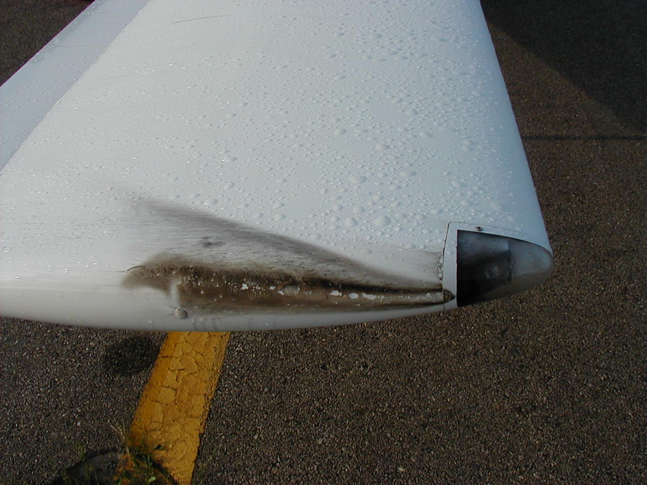The wing tip lights are also made by Eric Jones of http://www.periheliondesign.com. They were pretty vaporized so I bought some new ones. Quite a bit of the metal was deposited on the inside of the wing tip lens covers and I had to sand it off with wet and dry and re polish then with Mico Mesh.